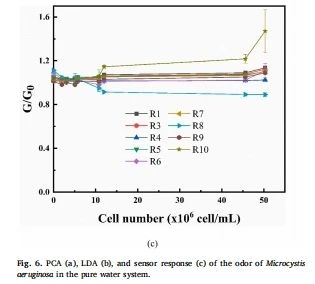 (1)詳細區分傳感器對不同濃度嗅味物質的響應,並(bìng)進行主成分分析(PCA)和線性判别分析(LDA);(2)通過電子鼻檢測(cè)研究對不同密度的銅綠微囊藻産生的揮發性嗅味物質的分析;(3)探究電子鼻的區分程度以及相應的傳感器響應強度,爲水中嗅味物質的快速、穩定檢測(cè)提供可靠數據。