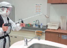 背負式工作模式,移動使用,内置電(diàn)池、壓縮機、試劑桶、自動控制器等,以低於(yú)10um的幹霧模式噴灑消毒劑,快速進行物品及空間的消毒。